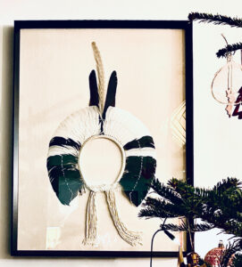 Le contraste entre les plumes naturelles, les torsades en fibres végétales et un cadre moderne fonctionne merveilleusement bien.