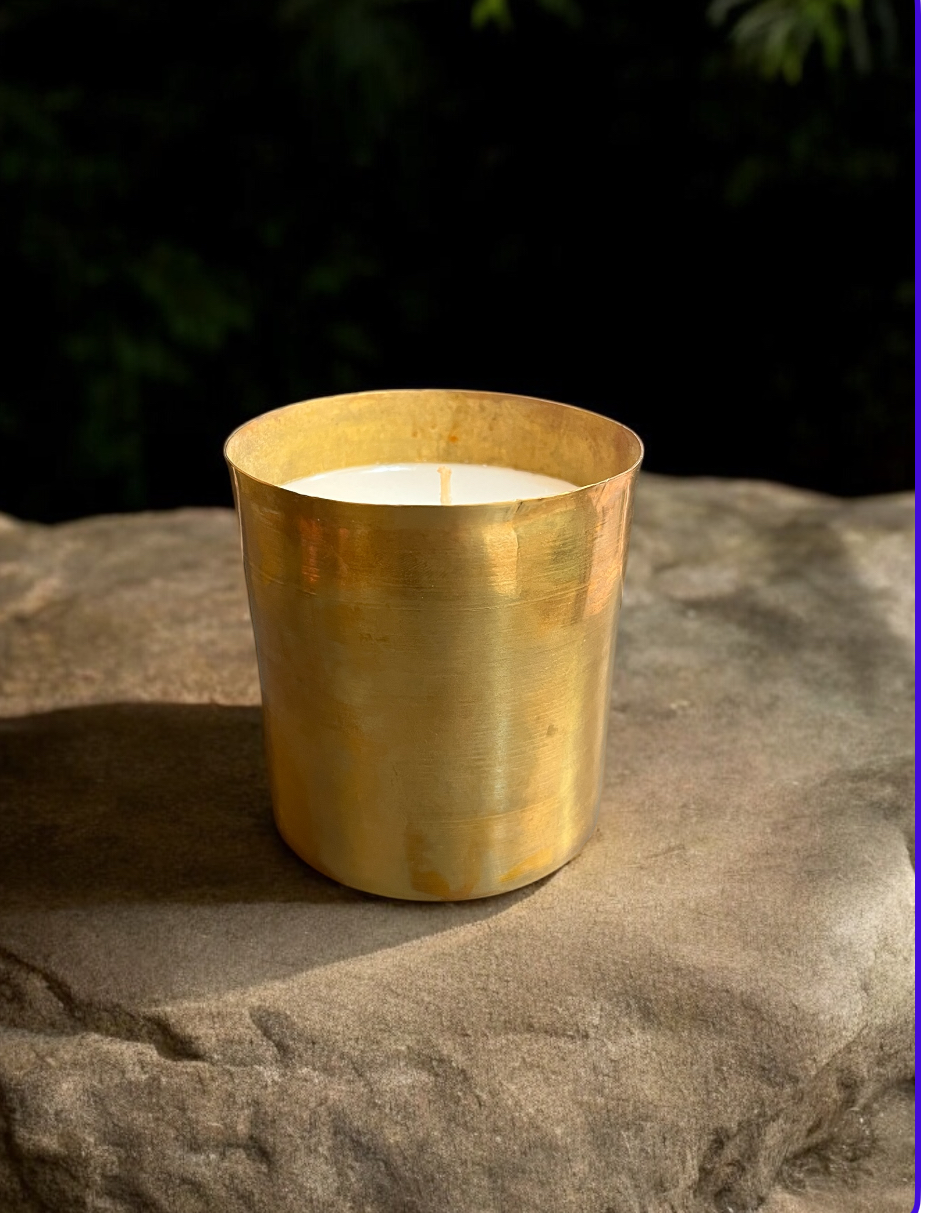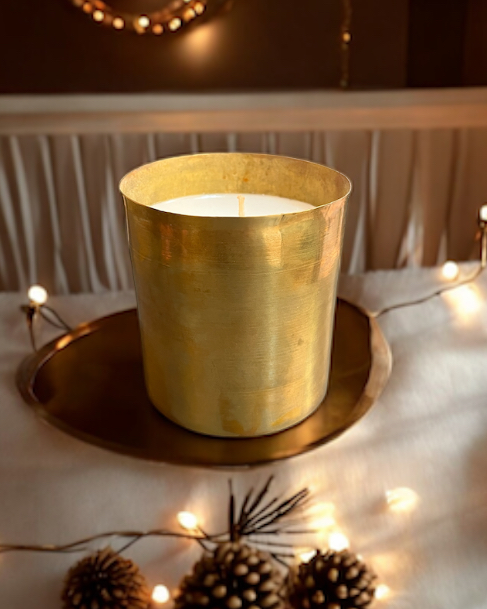 Une bougie en laiton doré, élégante pour la maison. On adore son style sobre et épurée qui s’adapte à tous les univers.