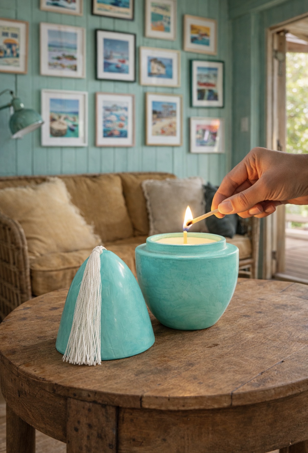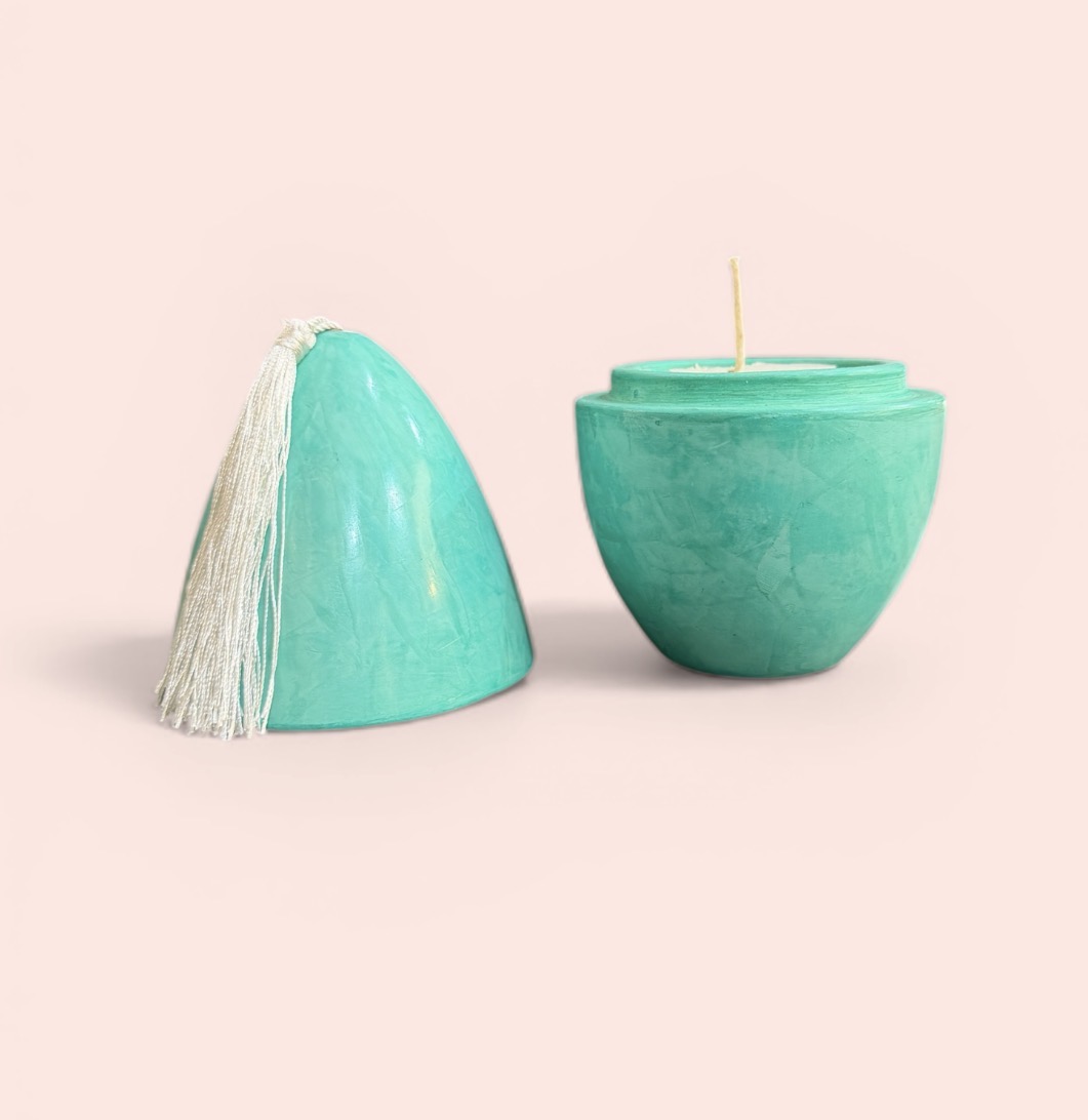 Disponible en plusieurs couleurs, cette bougie en terre cuite s’inspire des paysages naturels et des maisons baignées de lumière : vert céladon, vert d’eau, tons doux et minéraux. Elle s’intègre naturellement dans une décoration bohème, bord de mer, vintage ou contemporaine.