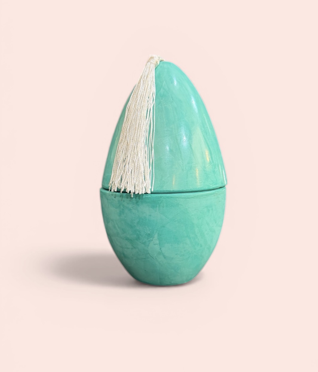 Cette bougie artisanale en terre cuite en forme d’œuf en fait partie.