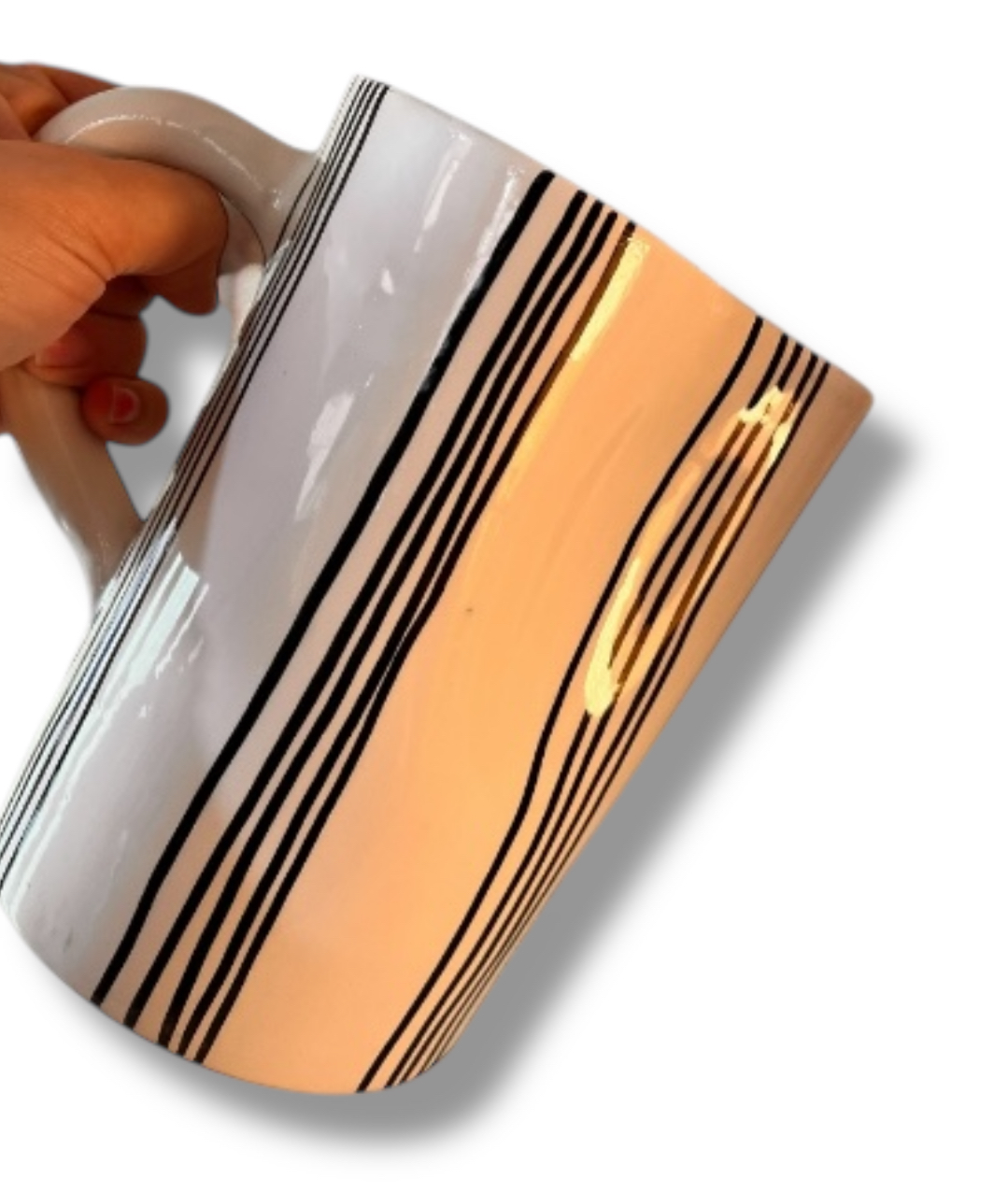 Cette jolie carafe Essaouira Rayée Noire , est recouvert de céramique, on aime ses dessins peints à la main et sa forme ultra design et originale.