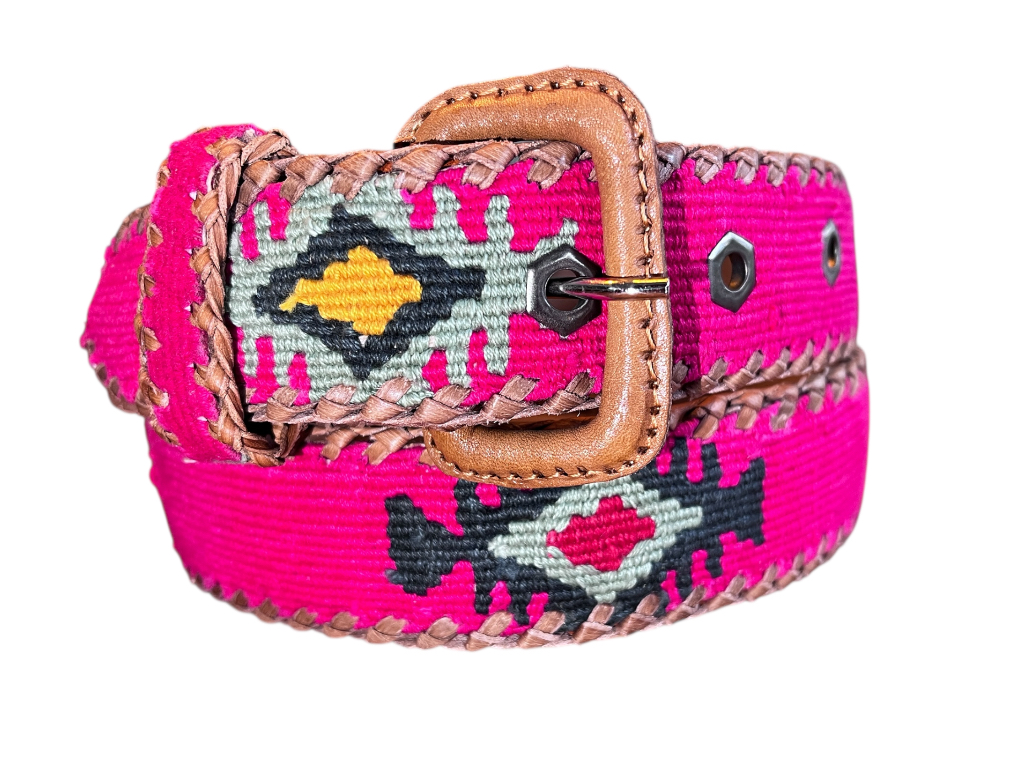 Chaque ceinture est tissée selon des techniques traditionnelles, sur des métiers à bras encore utilisés aujourd’hui dans certaines régions du Guatemala. Les motifs ne suivent aucune production industrielle : ils naissent du geste précis, de la maîtrise du fil, et d’une vraie sensibilité artistique. Une fois le tissage terminé, il est assemblé sur une base en cuir véritable, choisie pour sa tenue, sa souplesse et sa longévité.