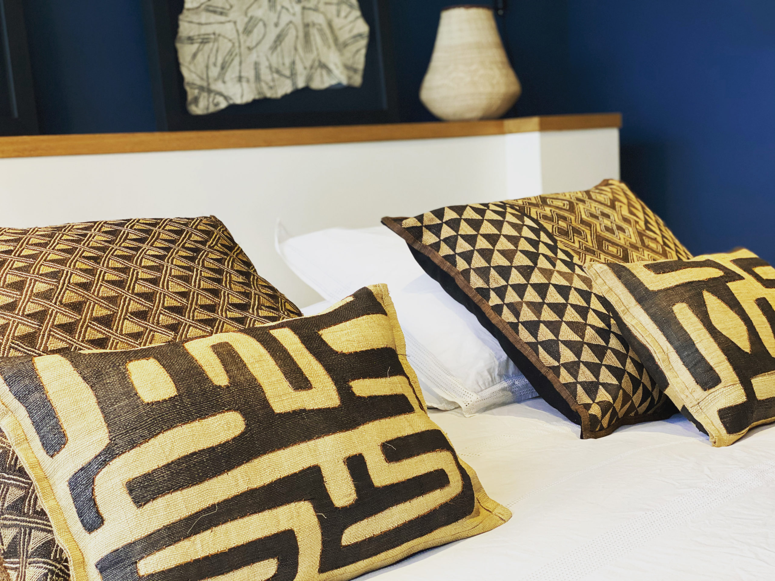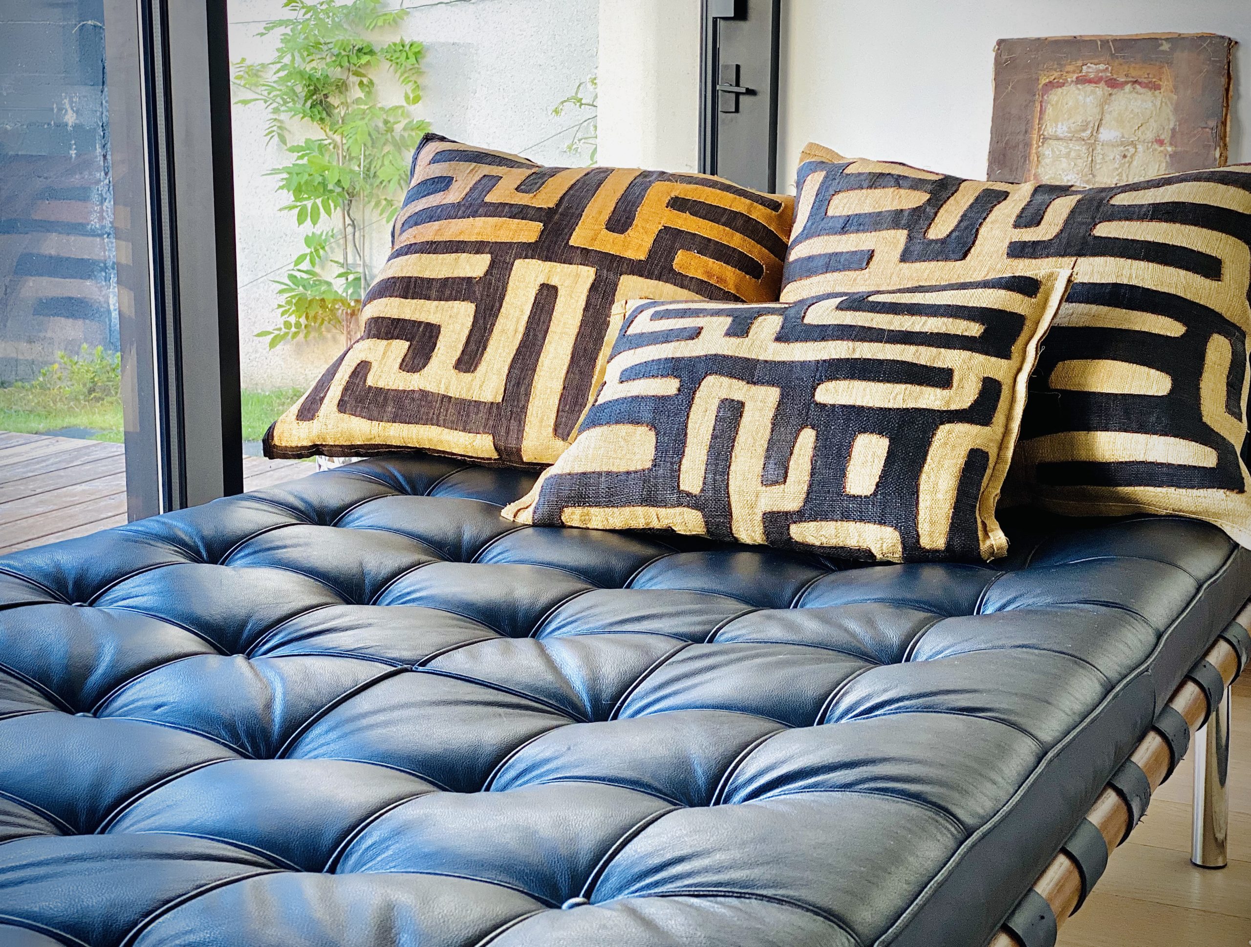 Au Zaïre, le peuple Kuba est connu pour ses textiles esthétique et moderne. Créés à partir de fibres de raphia, les étoffes de ces coussins Shoowa ont été tissé et brodé à la main. Leurs motifs géométriques sont liés à l’histoire des ethnies et aux rituels congolais.