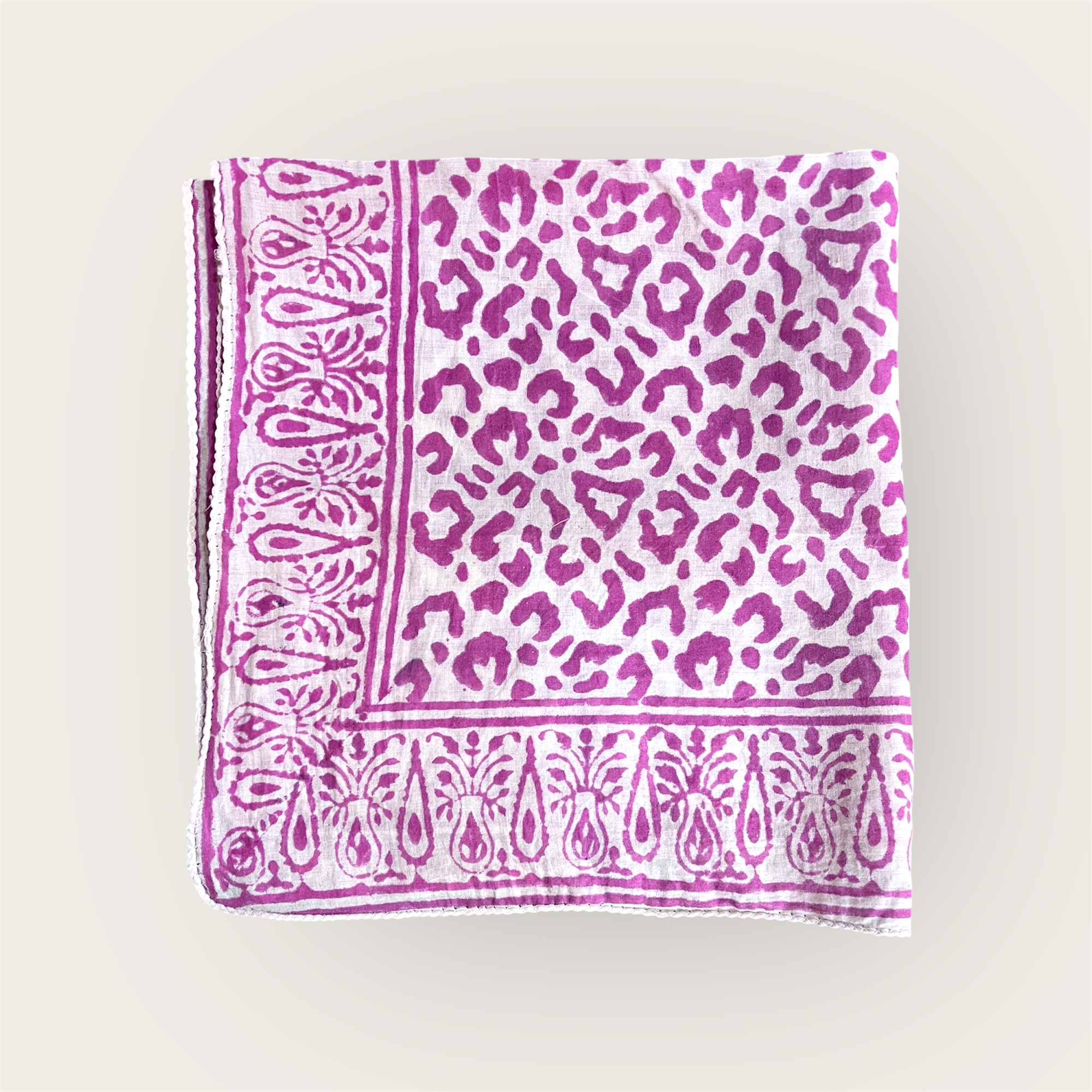 Comme toute notre collection, les motifs de nos Foulard Léo Rose sont exclusifs et nos tissus sont imprimés à la main selon la technique artisanale du Blockprint.