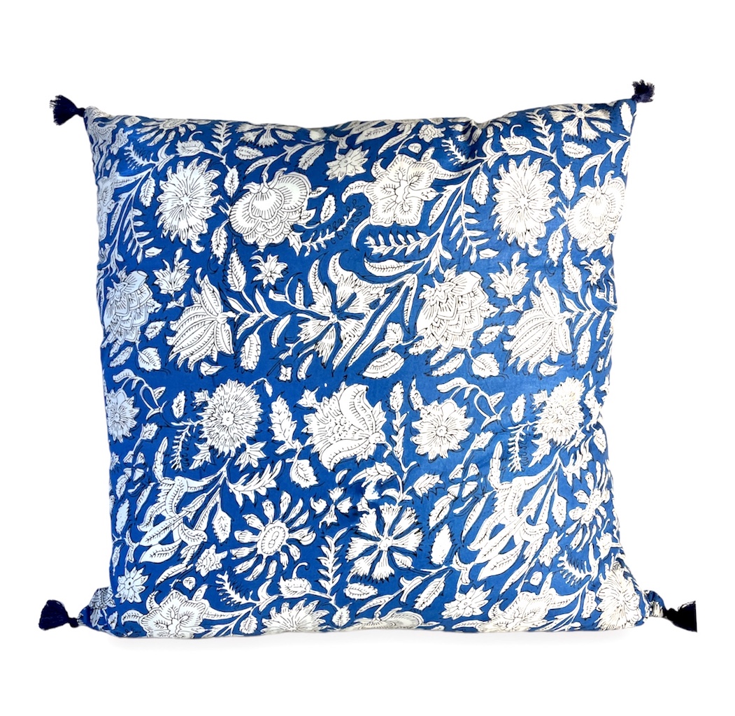 Nos coussins indien bleu Capri sont doux et légers en voile de coton imprimé blockprint en Inde.