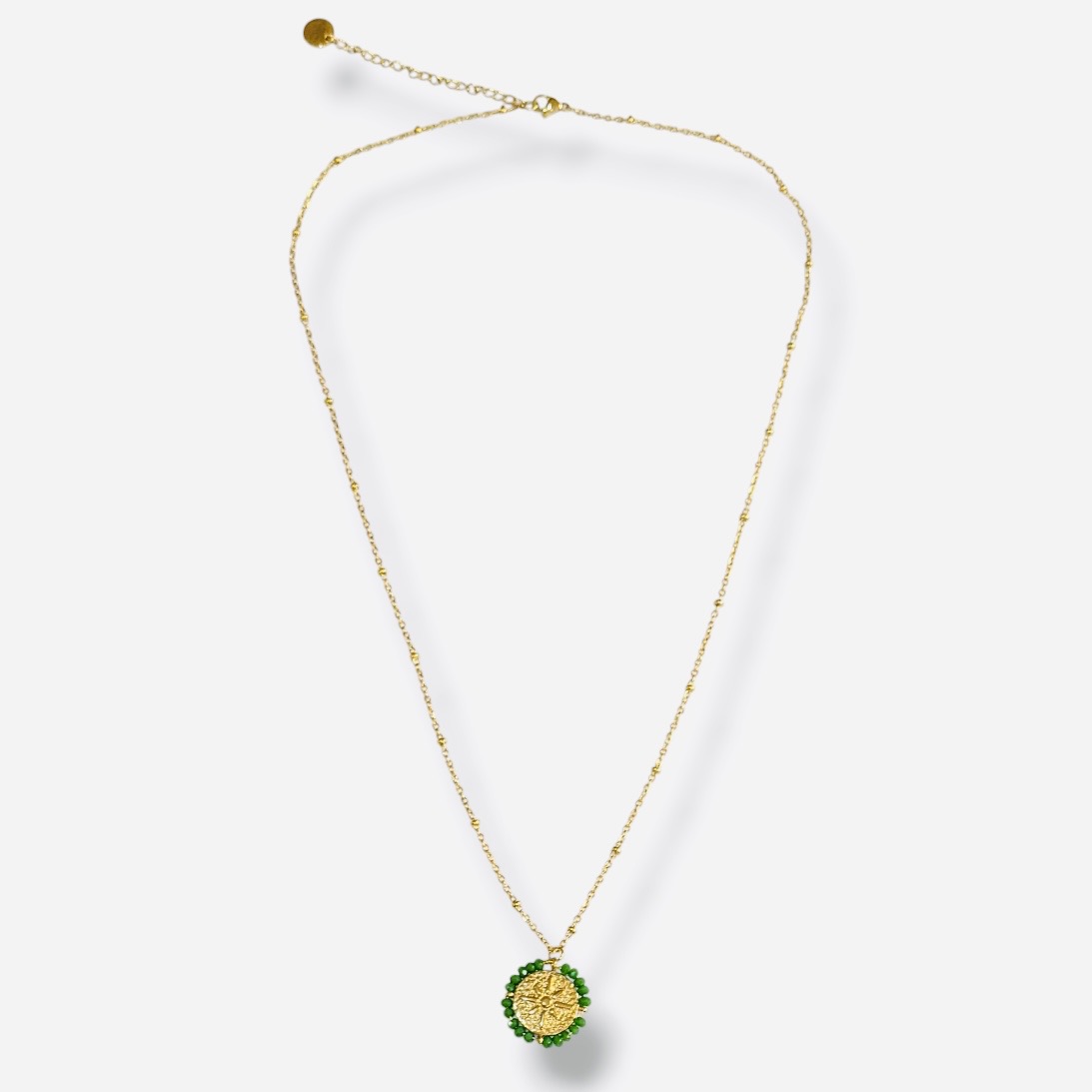 Conçu en acier inoxydable doré, cette médaille porte-bonheur est à la fois résistant et hypoallergénique. Il ne noircit pas, résiste à l’eau et vous accompagne sans contrainte au quotidien. C’est le bijou parfait à porter sans jamais l’enlever, même en vacances, à la plage ou sous la douche.