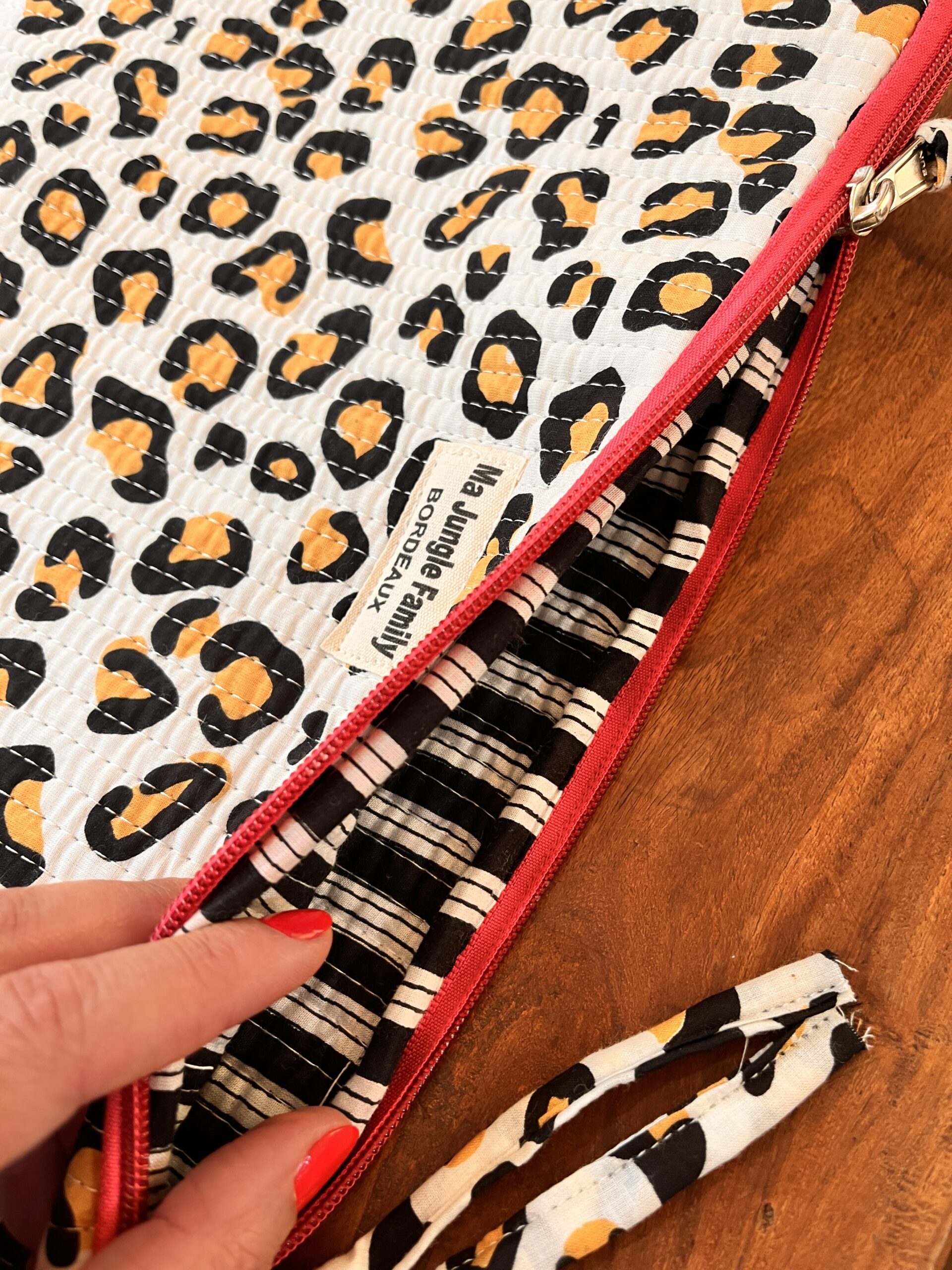 L’imprimé est réalisé selon la technique artisanale du block-print, un savoir-faire ancestral du Rajasthan. Cela signifie que chaque housse est unique, avec ses petites irrégularités qui racontent l’humain derrière l’objet.