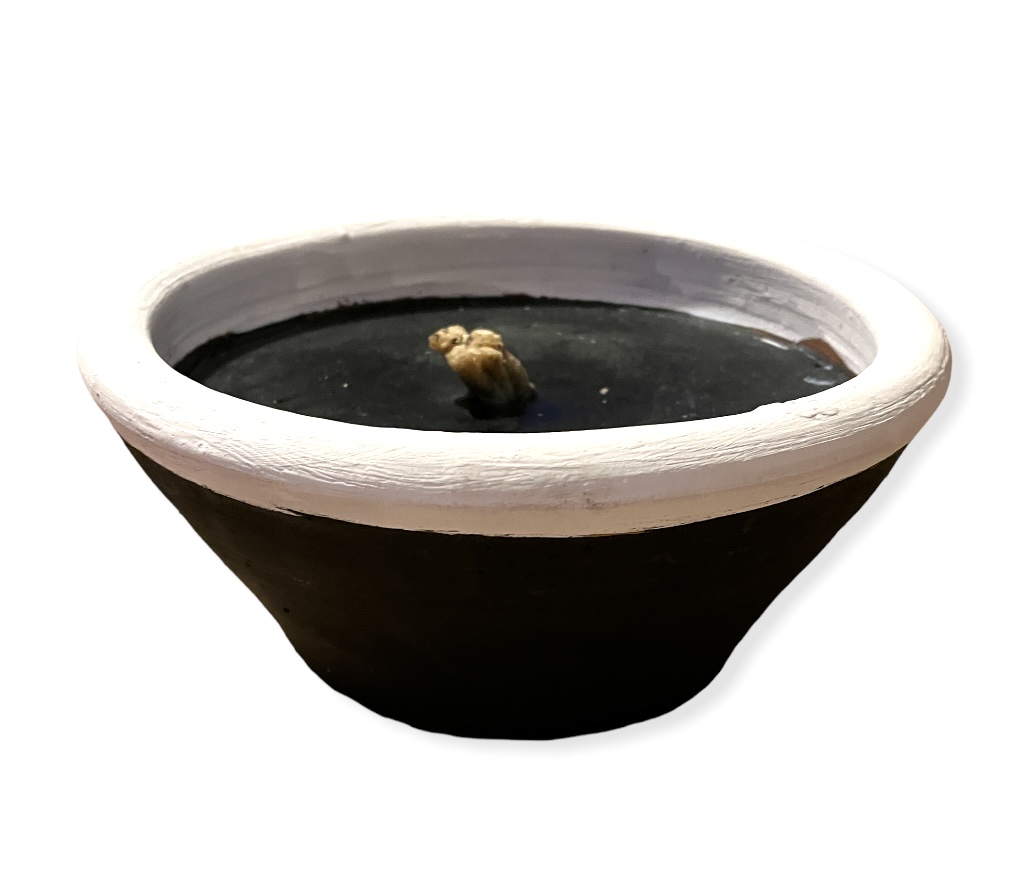 - Bougie en terre cuite peinte en noir et bordure blanche, à usage extérieur