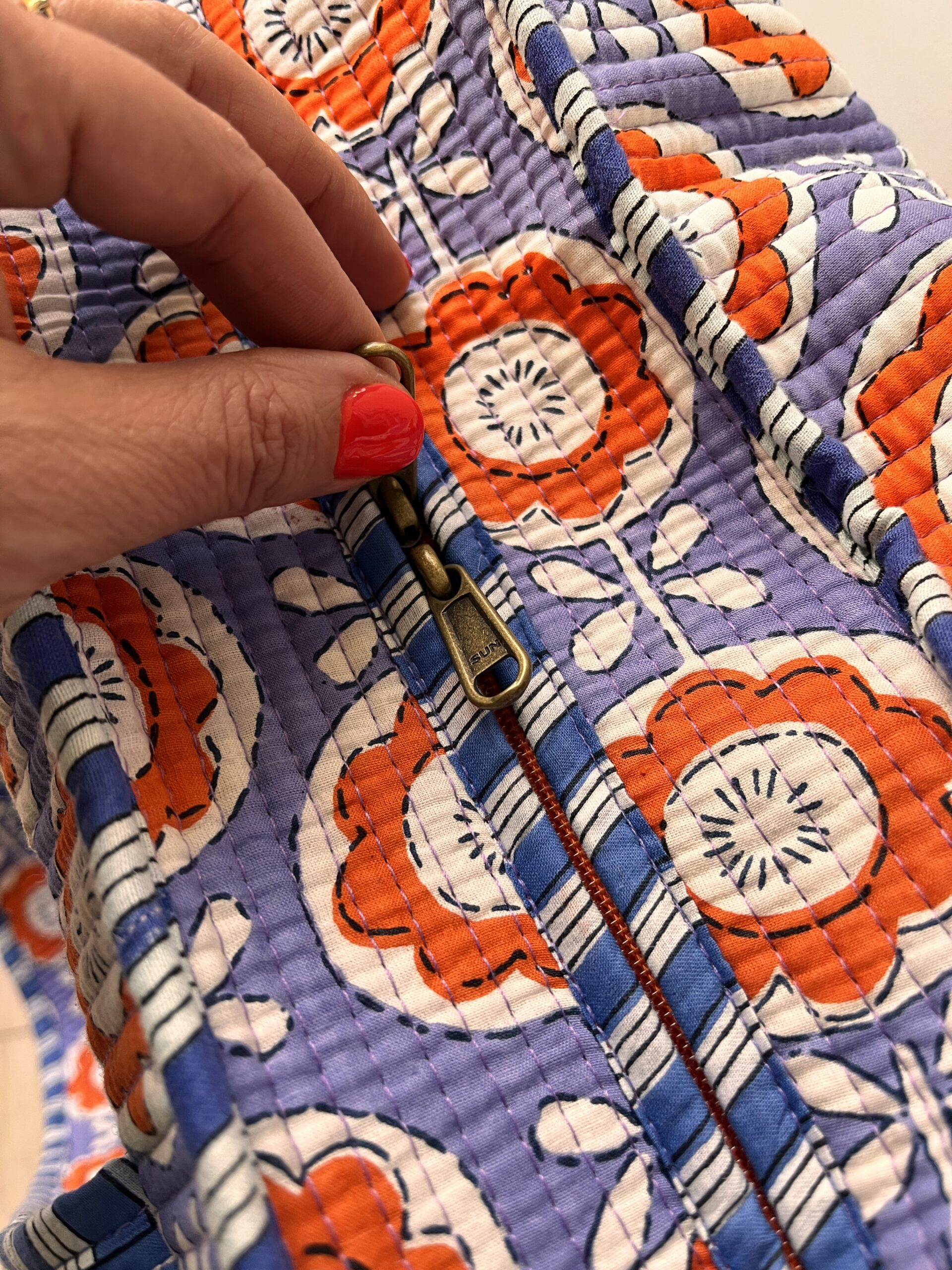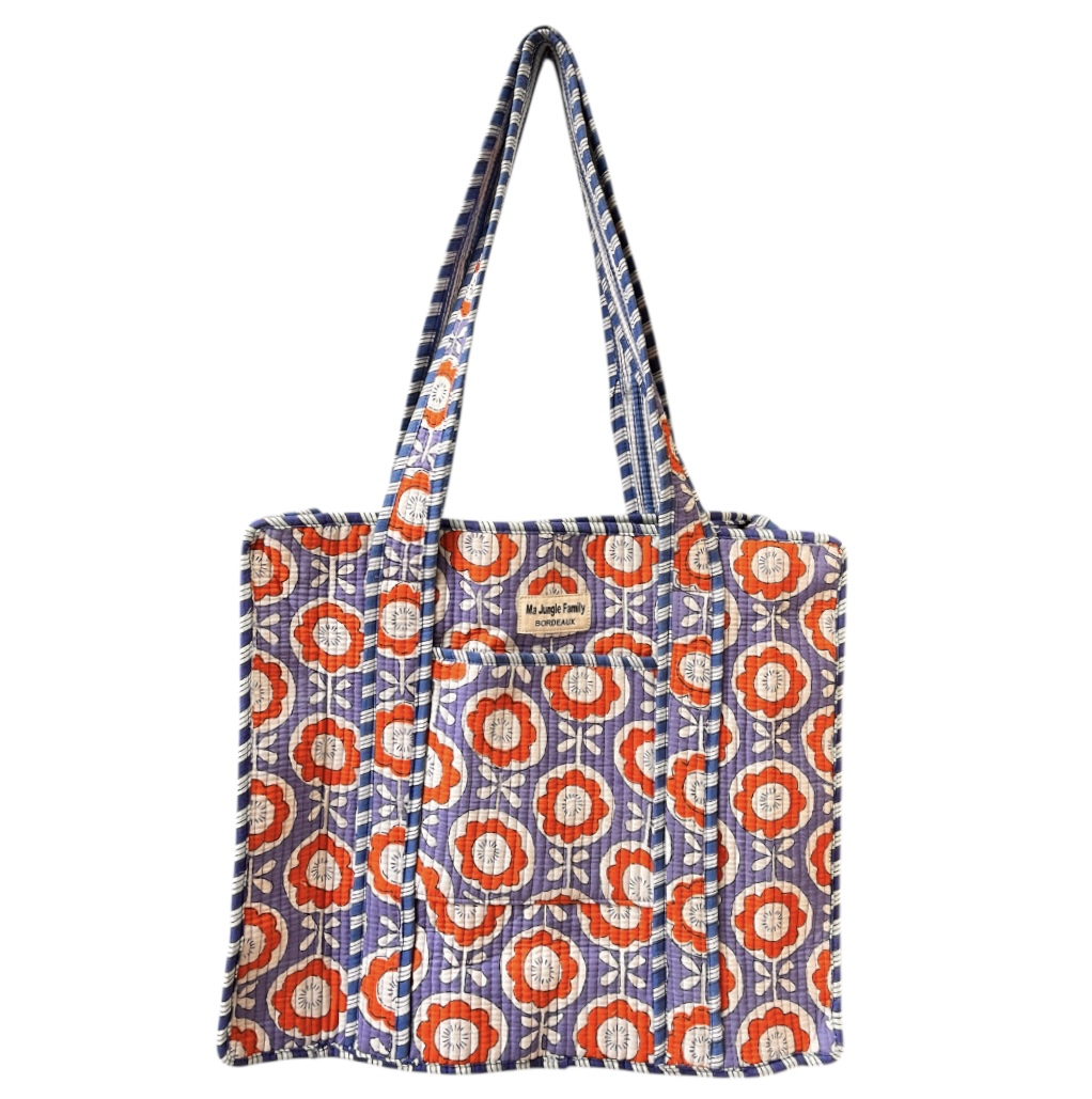 Avec ses motifs fleuris imprimés au block print et leur couleurs punchies, ces grands sacs vous accompagnerons partout.