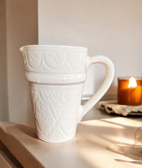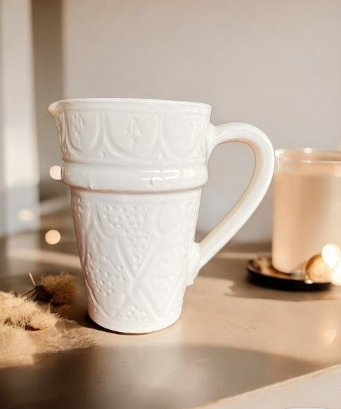 On adore la carafe Beldi Blanche en terre cuite, fabrication entièrement artisanale à Safi