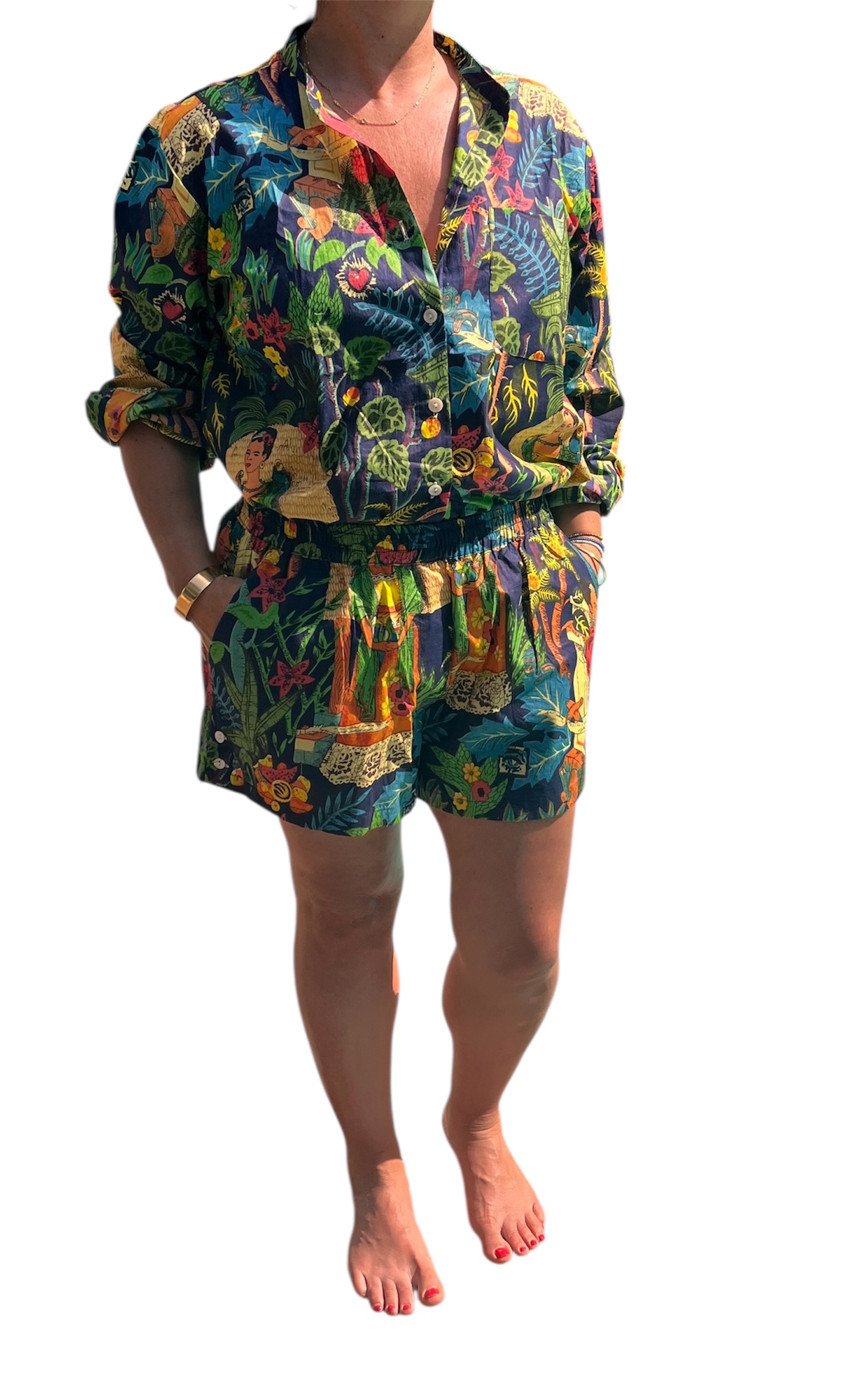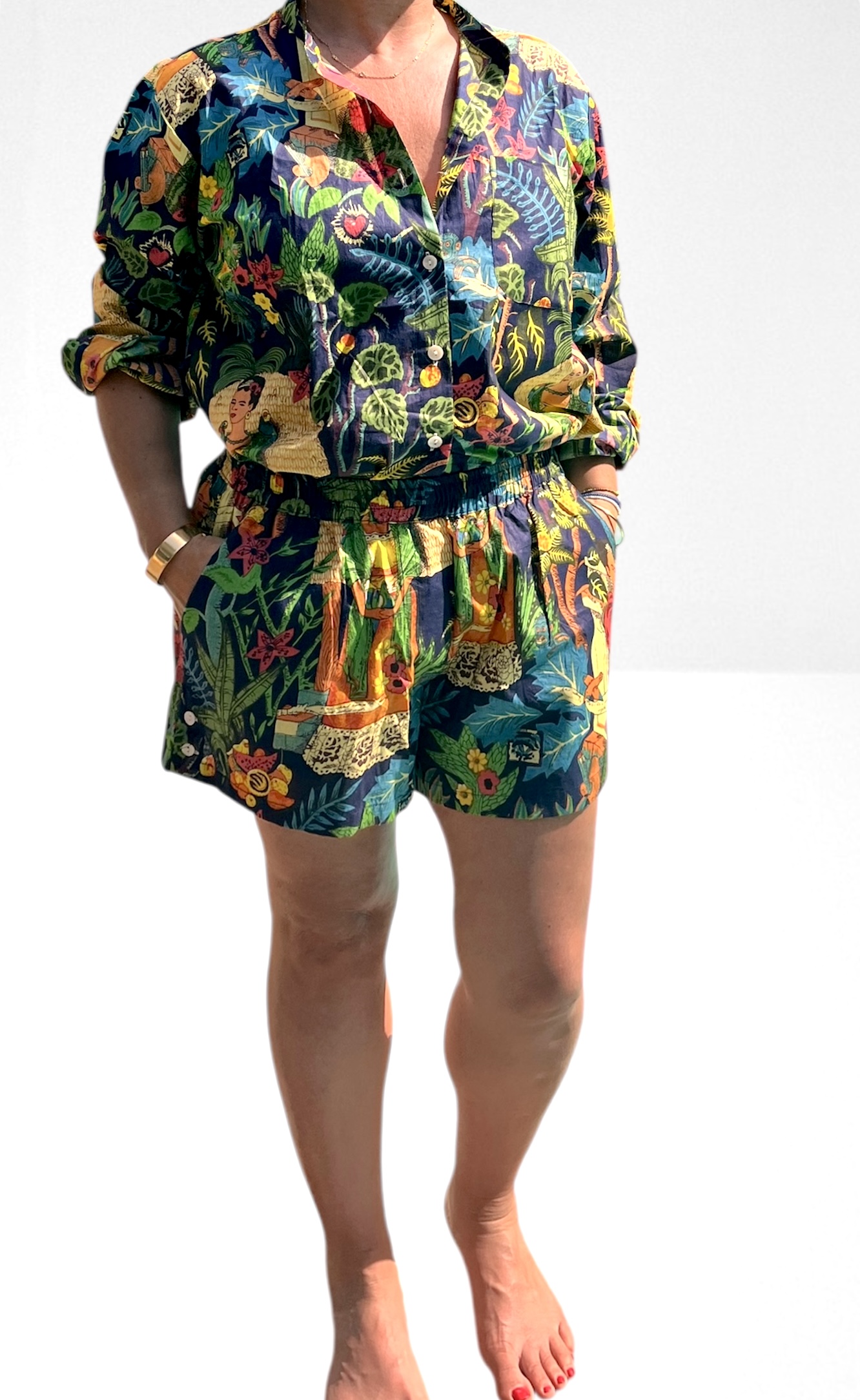 - Un ensemble chemise et short femme au style bohème-chic