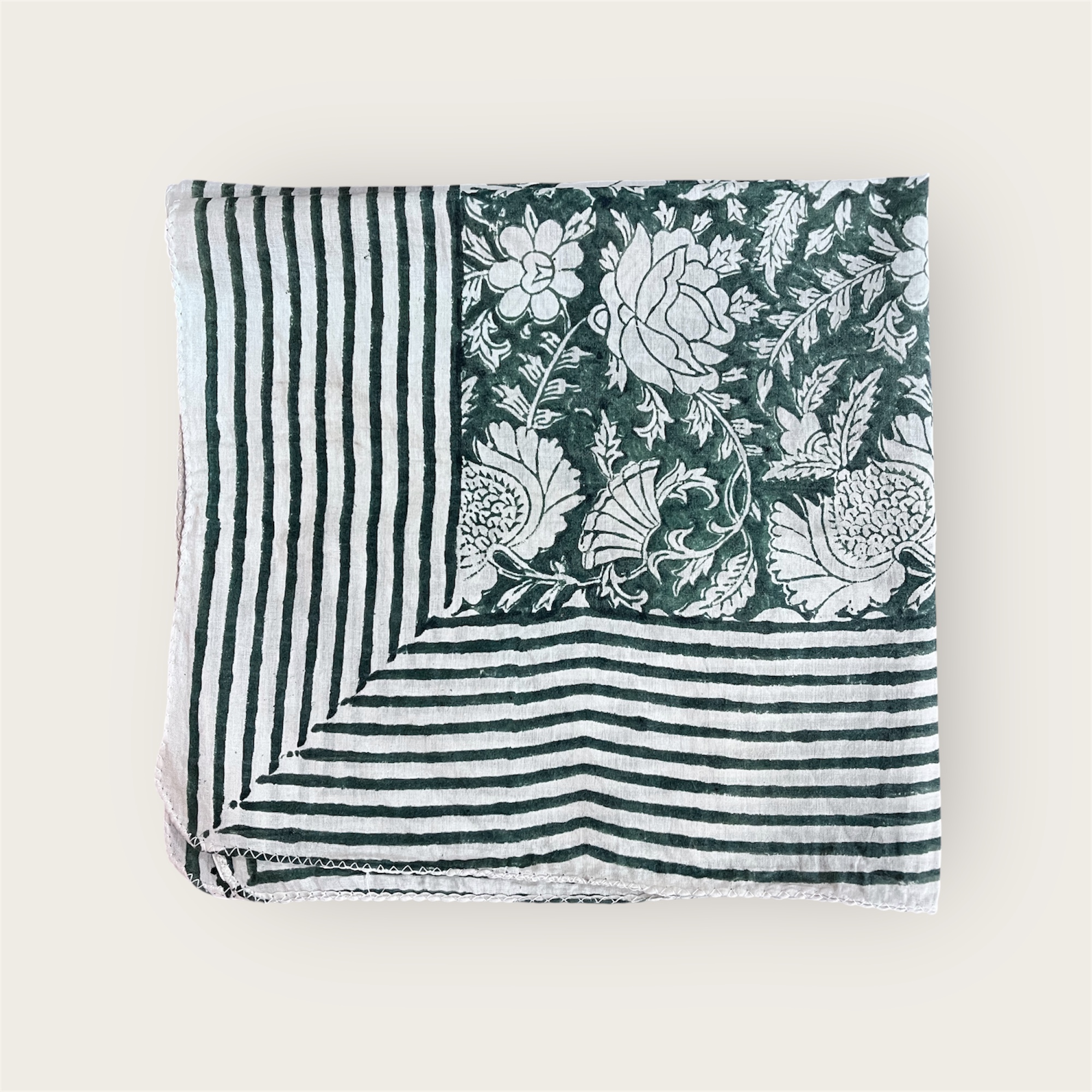 Comme toute notre collection, les motifs de nos Foulards Anna Vert sapin sont exclusifs et nos tissus sont imprimés à la main selon la technique artisanale du Blockprint.