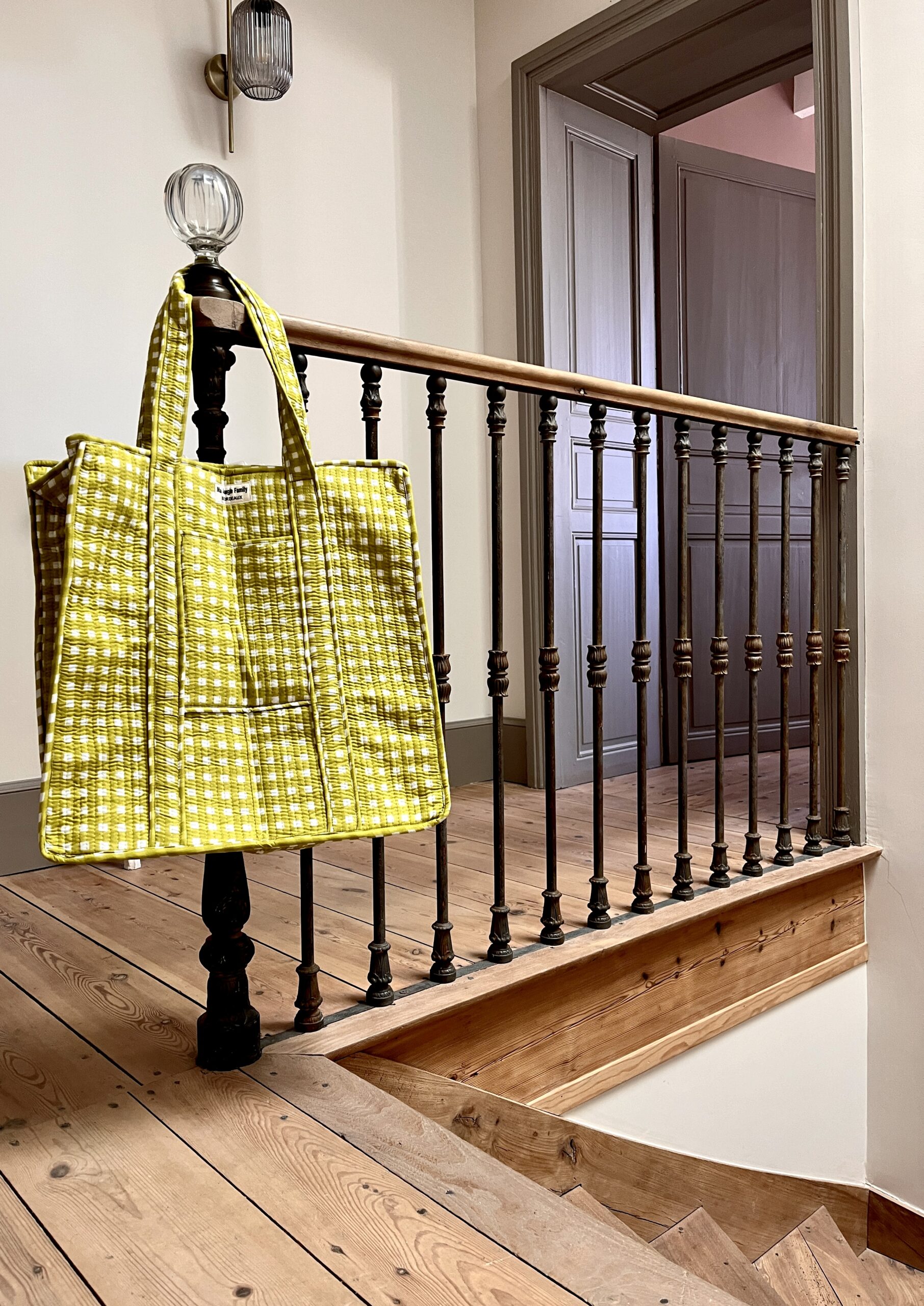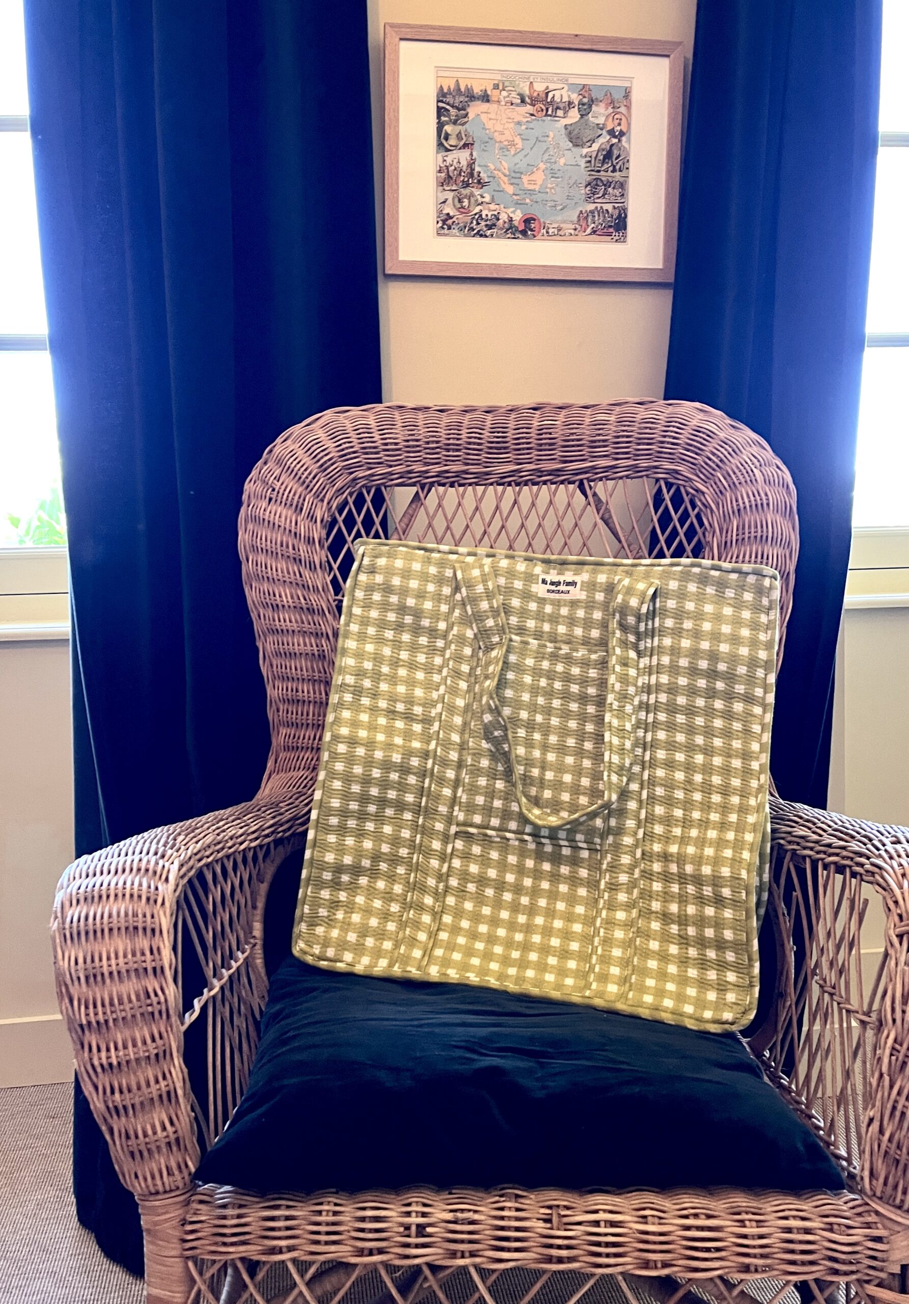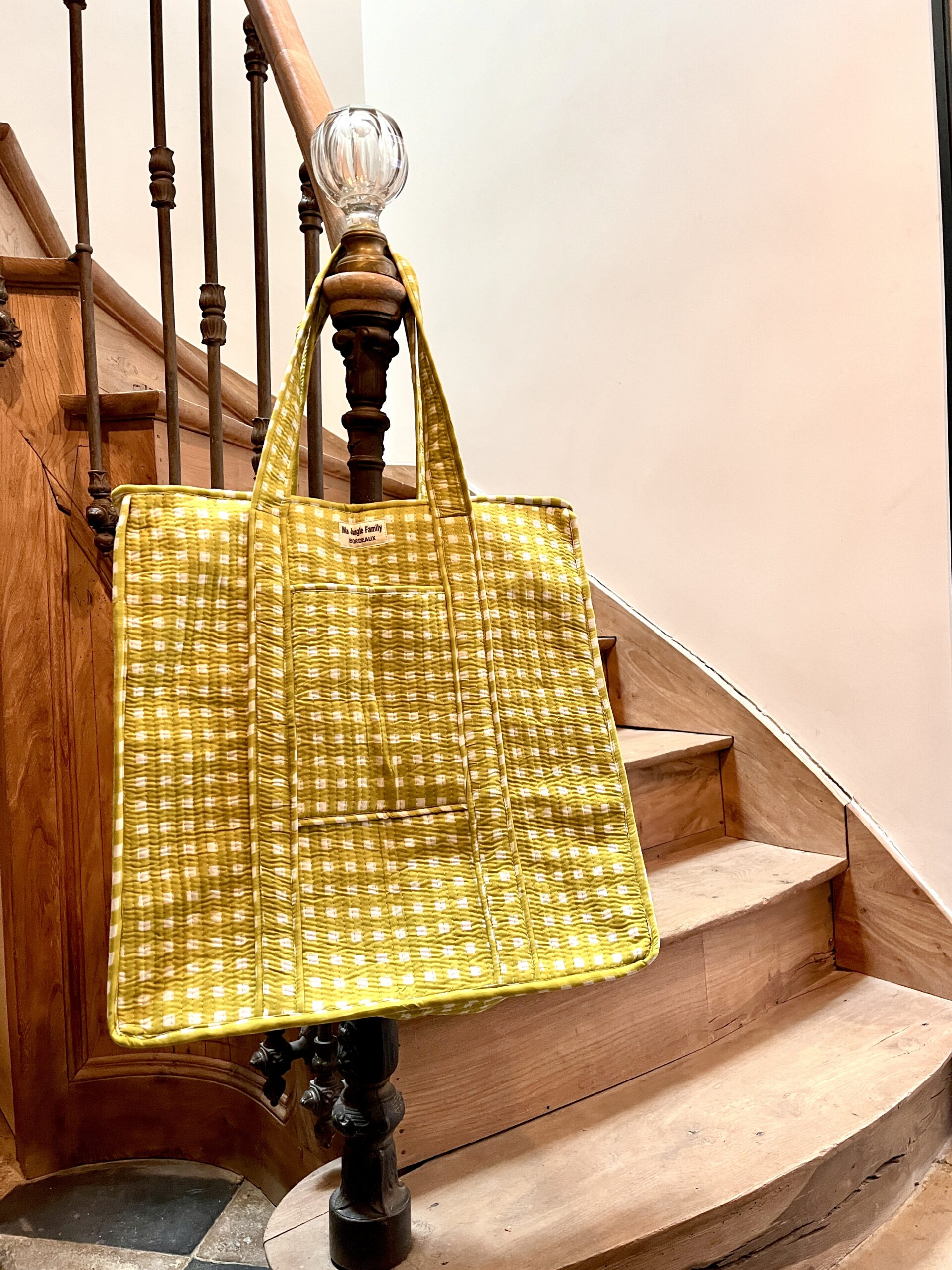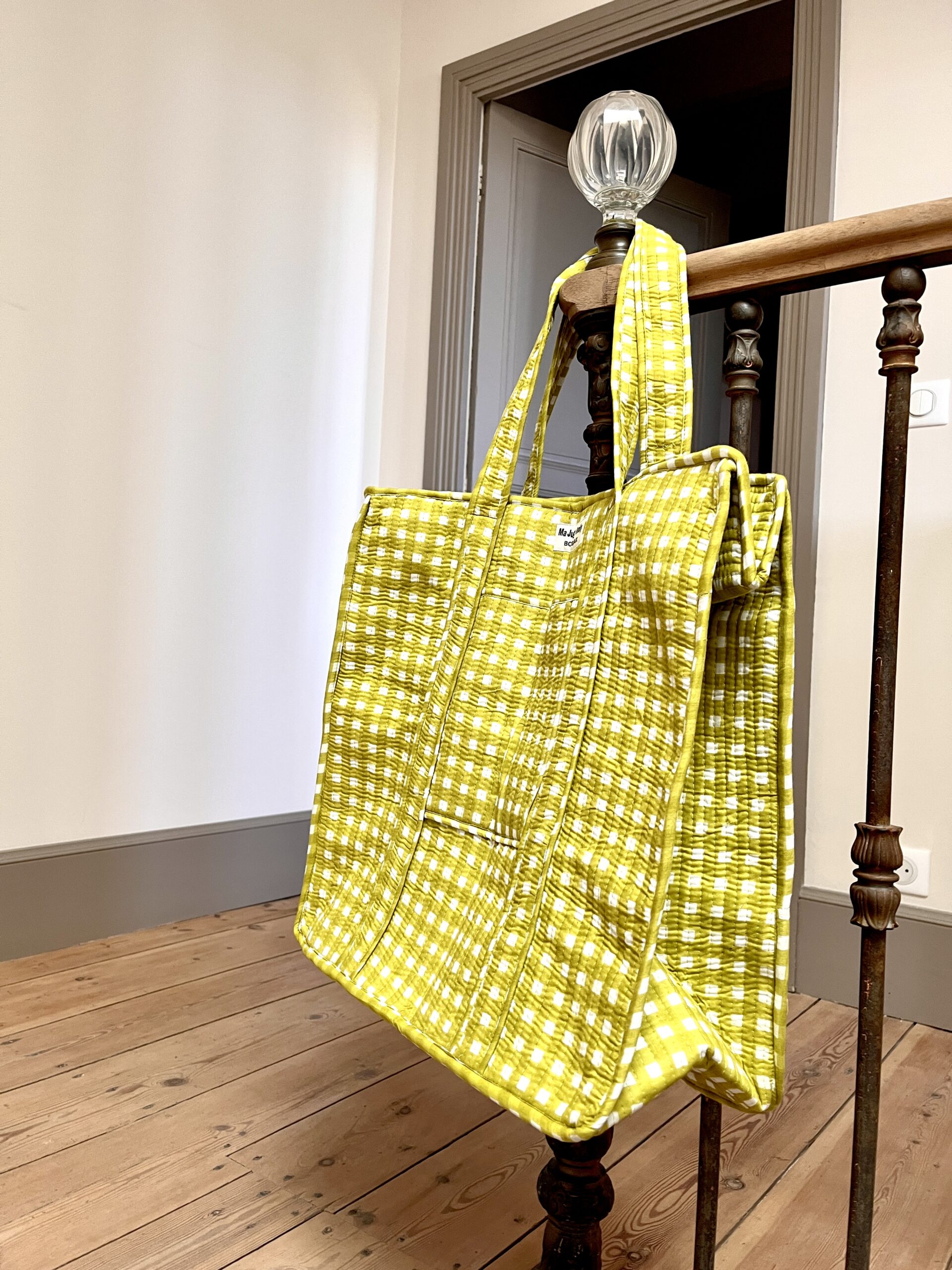 On adore le Grand Cabas matelassé Guinguette Anis en coton indien molletonné, un plein de douceur.