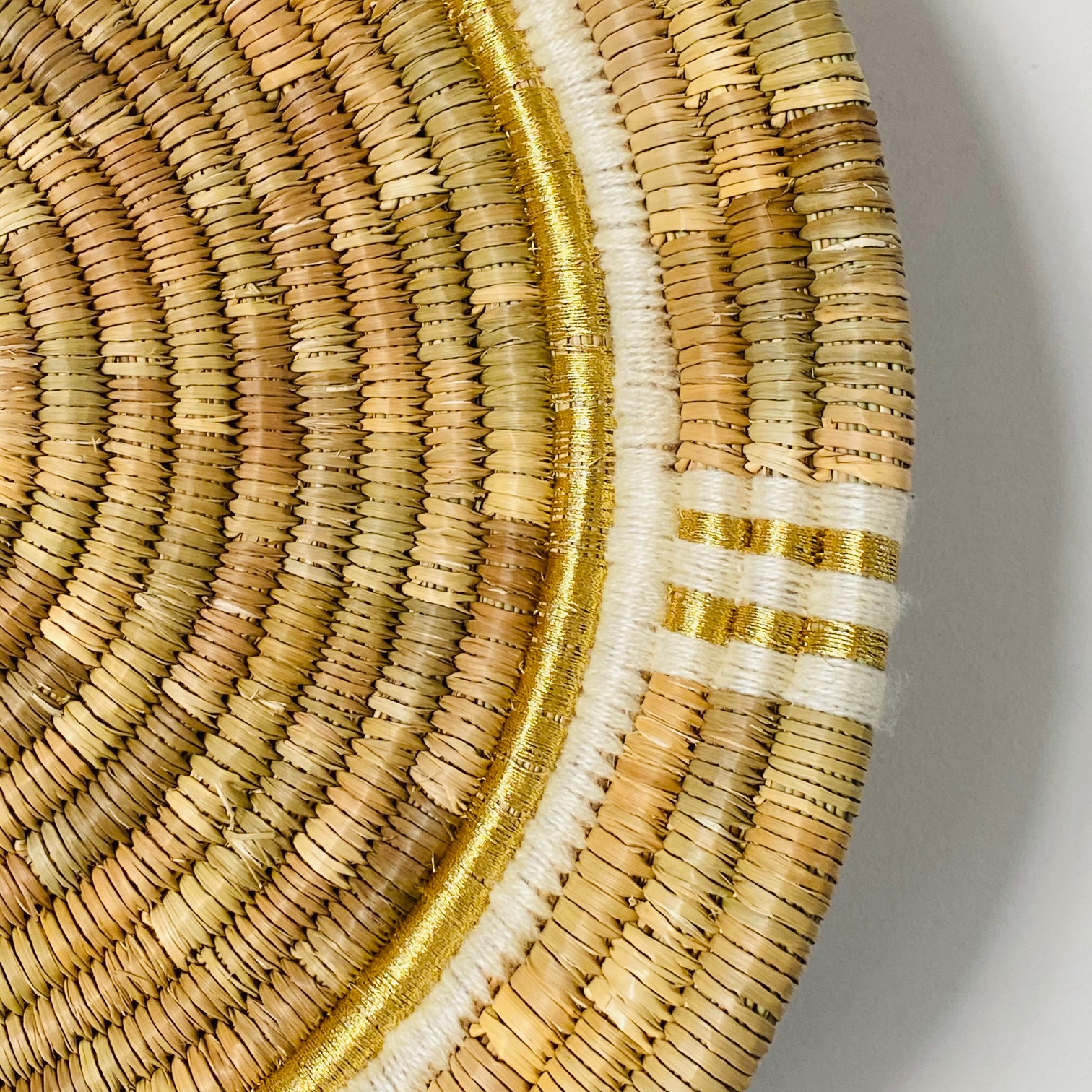 Grand plateau marocain au design épuré et graphique en fibre Smar et laine blanche et noire et son fil doré.