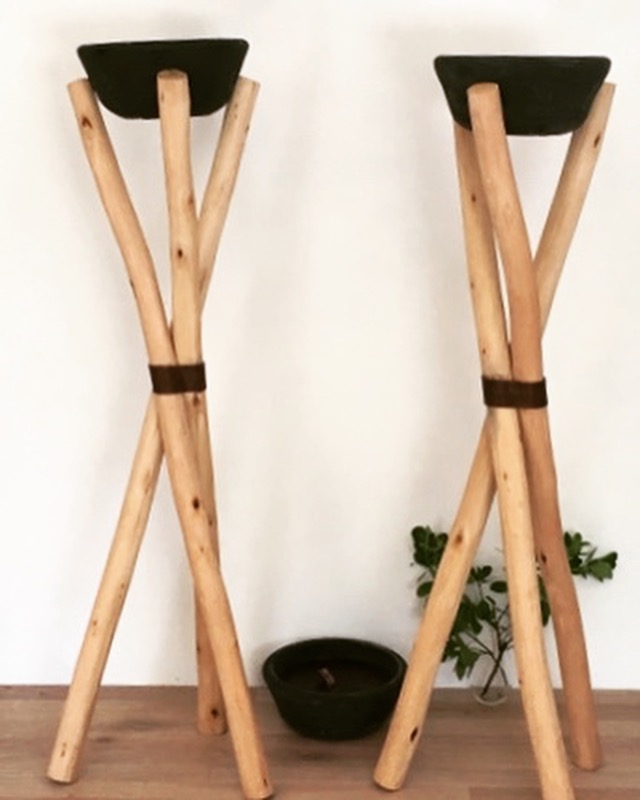 Elle se compose d’un trépied en bois d’eucalyptus de 120cm de haut serti par une attache en metal pour une meilleure tenue.