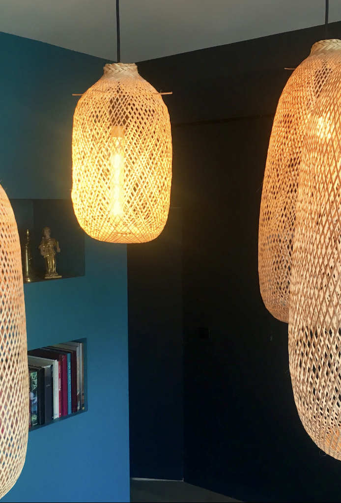 Le tressage laisse passer la lumière pour apporter le côté chaleureux et cosy dans la pièce.