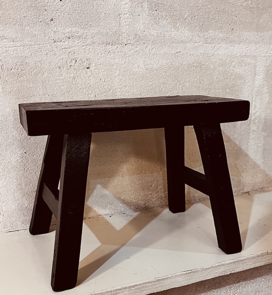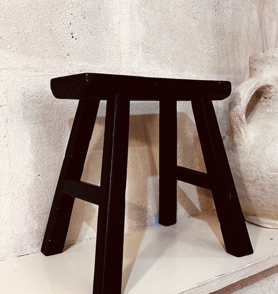 On adore ce petit Tabouret en Orme vintage patiné en noir!!!